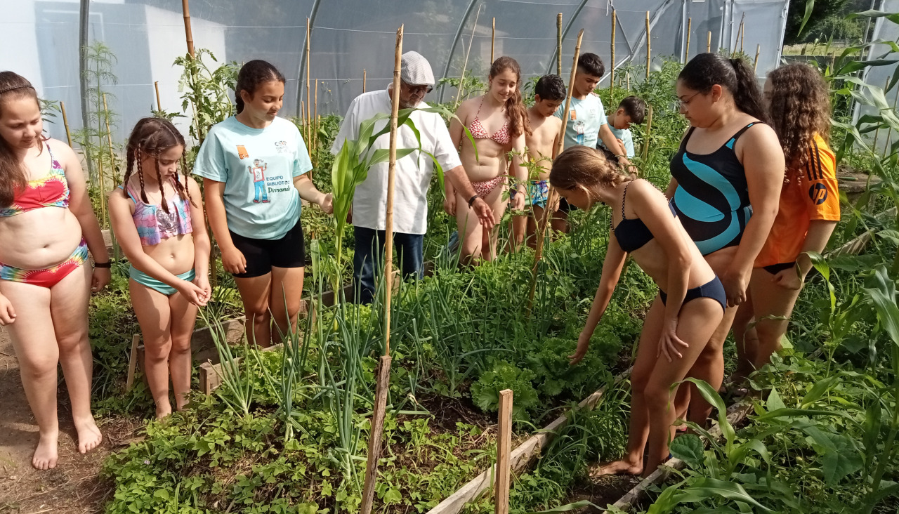 Ese colaborador acude cada viernes a su cita con los escolares de Artes para realizar las tareas agrícolas propias de un huerto escolar. Este curso académico fueron 41 escolares los que disfrutaron de sus lecciones, elaboraron compost, prepararon la tierra, plantaron y regaron numerosas especies, tales como tomate, lechuga, maíz, pimiento, calabacín, cebolla, judía, pepino, fresa y calabaza y ya dieron sus frutos.