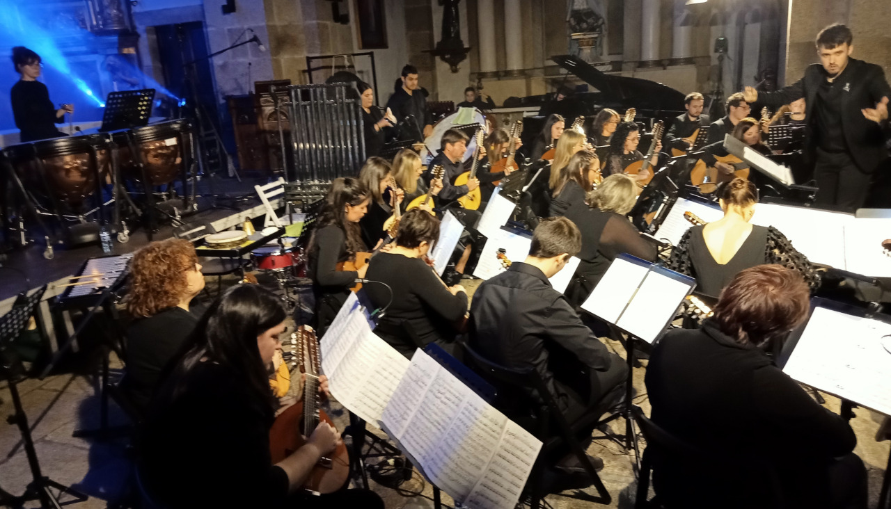 Pero, si hay algo por lo que destaca esta película es por su banda sonora escrita por el compositor Miklos Rózsa. Por ello, la primera parte del recital, que tuvo lugar en una abarrotada iglesia parroquia de Santa Uxía, con una acústica perfecta, estuvo compuesto por un repertorio inspirado en su música y en la de Semana Santa. Por ello, el concierto arrancó con “Adagio para cuerdas” de Samuel Barber, la marcha “La Madrugá” de Abel Moreno, para dar paso a un popurrí de “Ben Hur”, con Preludio, Rema del amor, Remando en la galería de los esclavos, El ardiente desierto, El amor de una madre y Desfile de los carruajes, con dirección y arreglos del propio Millet.