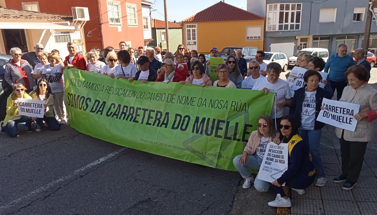 Como ya hicieron el pasado 22 de junio, los vecinos de la Rúa Carretera do Muelle, en Escarabote, salieron ayer de nuevo a manifestarse en contra del cambio de nombre de su calle, que el Ayuntamiento de Boiro acordó el año pasado que pasase a llamarse “Padre Joseba Beobide”. De esa manera pretenden mantener viva la llama de su reclamación para que se revoque ese acuerdo y anunciaron que van a seguir luchando por su objetivo, que no es otro que recuperar el nombre de la calle con el que “nos identificamos, y que no pararán hasta que lo consigan.