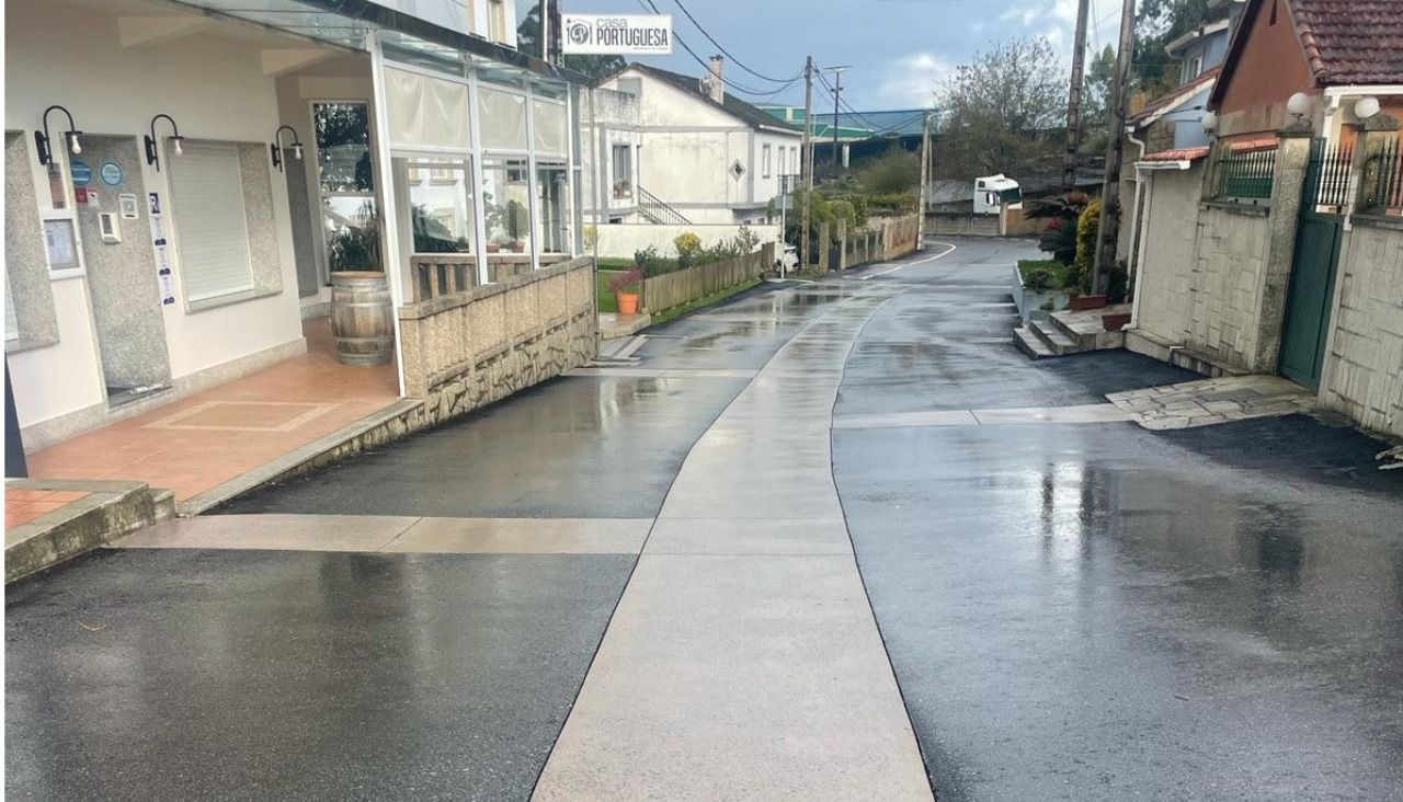 Según detallan desde el Ayuntamiento, las actuaciones ejecutadas consistieron en una renovación del firme de aglomerado, instalando franjas de adoquines a lo largo del camino para conseguir una reducción de la velocidad de circulación de los vehículos. Además, se habilitó una zona en plataforma única con una nueva configuración, “executada con franxas de formigón desbastado e zonas de asfalto pulido” que “conseguen formar unha praza de centralidade e prioridade peonil”, destacan desde el ejecutivo de Carlos Viéitez.