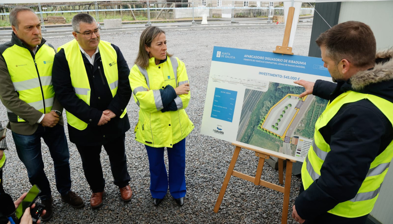 Ribadumia contará a partir de abril con el nuevo aparcamiento disuasorio que se ejecuta en las inmediaciones del enlace de la llamada Vía Rápida con la Autovía do Salnés. Así lo avanzó esta mañana durante una visita la conselleira de Infraestruturas e Mobilidade, en funciones, Ethel Vázquez, que también apuntó que uno de los objetivos principales de esta nueva bolsa de estacionamiento será fomentar los viajes compartidos en torno a esta carretera.