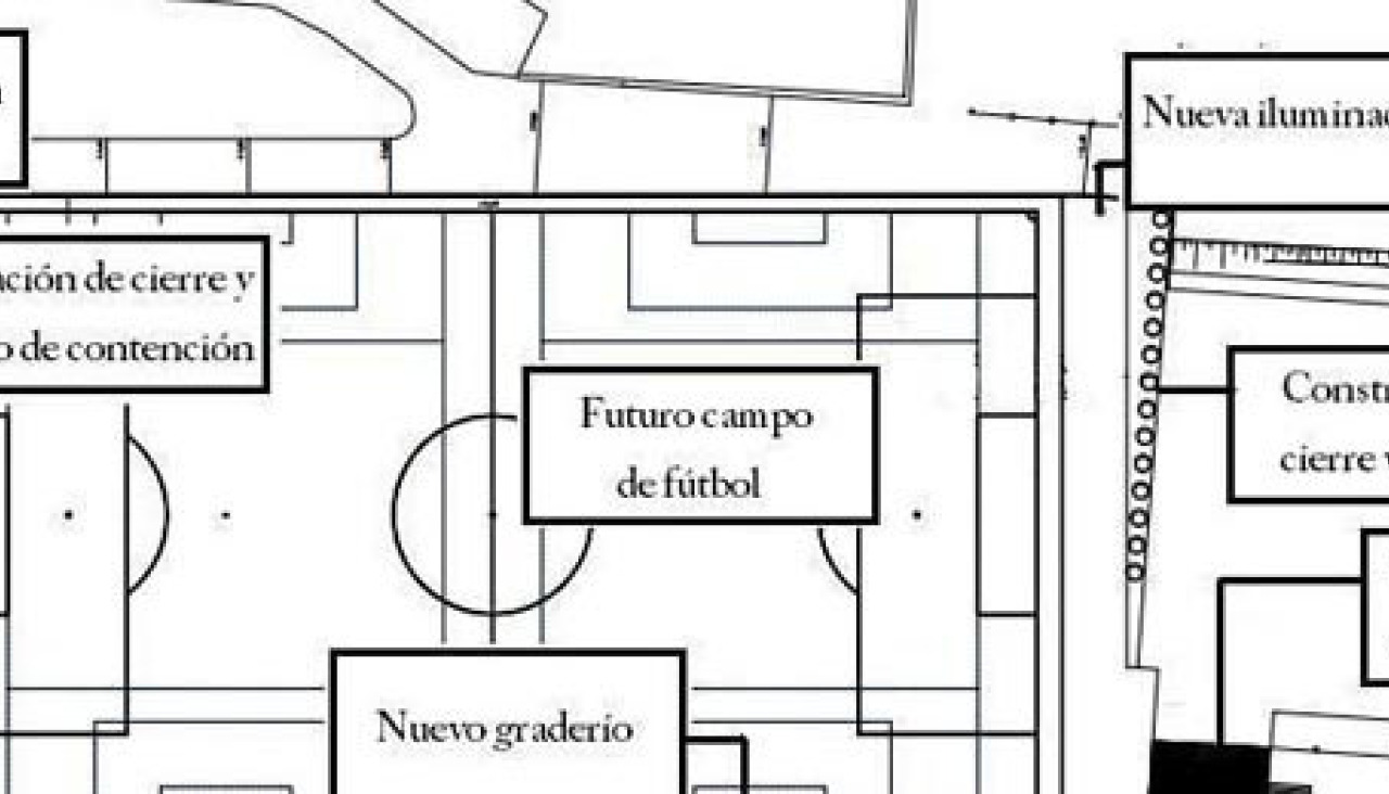 Al mismo tiempo, los trabajos significarán mejoras en el campo de fútbol ya existente y dejará trabajo hecho para la construcción del segundo, proyectado junto al actual. De esta forma, se ampliarán las gradas existentes por ambos lados y se creará un graderío cubierto nuevo en el lado opuesto, actuación coronada con la instalación de nuevos focos para la iluminación de las instalaciones.