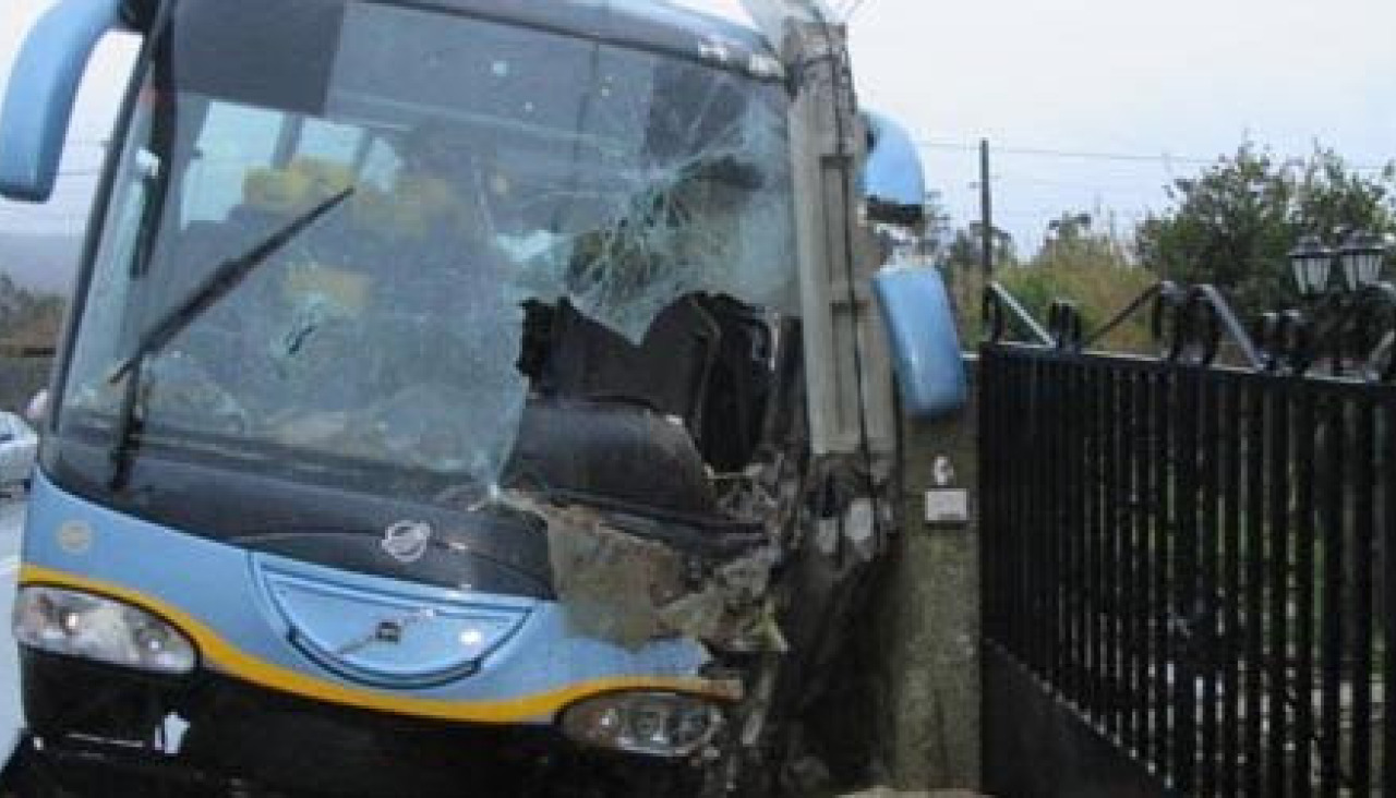 Un riveirense de O Touro, J.L.V., de 42 años, resultó herido leve en un accidente de tráfico con el autobús de transporte escolar que conducía sin pasajeros, pues aún no iniciara la ruta. El siniestro se produjo poco antes de las ocho menos cuarto de la mañana de ayer en la AC-550, en Carballosa (O Son). El Volvo 1251-GPH que pilotaba se salió de la vía, al parecer, al intentar esquivar a un coche, e impactó con un muro y un poste de hormigón del tendido eléctrico. Inicialmente, se indicó que el chófer quedara atrapado, pero al llegar los Bomberos de Riveira ya estaba fuera del mismo, al parecer tras salir por un hueco del parabrisas.