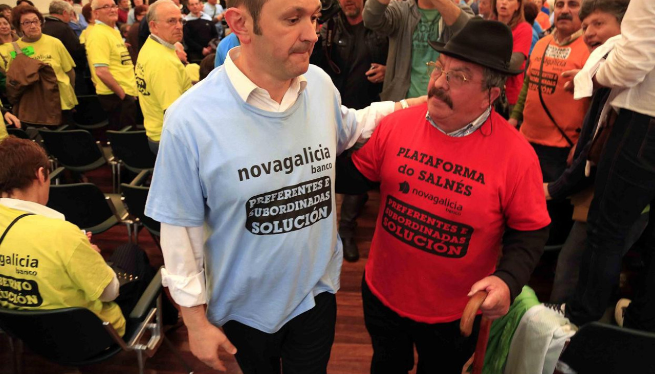 El presidente de la Diputación, Rafael Louzán, se enfundó una de las camisetas de los afectados por las participaciones preferentes durante la frustrada celebración de la sesión plenaria de la administración provincial por la mañana. La presencia de los afectados fue masiva por lo que la sesión de debate no llegó a celebrarse. Diputados del PSOE y del BNG se solidarizaron con los presentes vistiendo sus camisetas, un gesto al que se unió finalmente el presidente. Fue en el interior del salón de plenos donde los afectados realizaron una asamblea-coloquio para dar cuenta de su situación actual y exigir más implicación política.