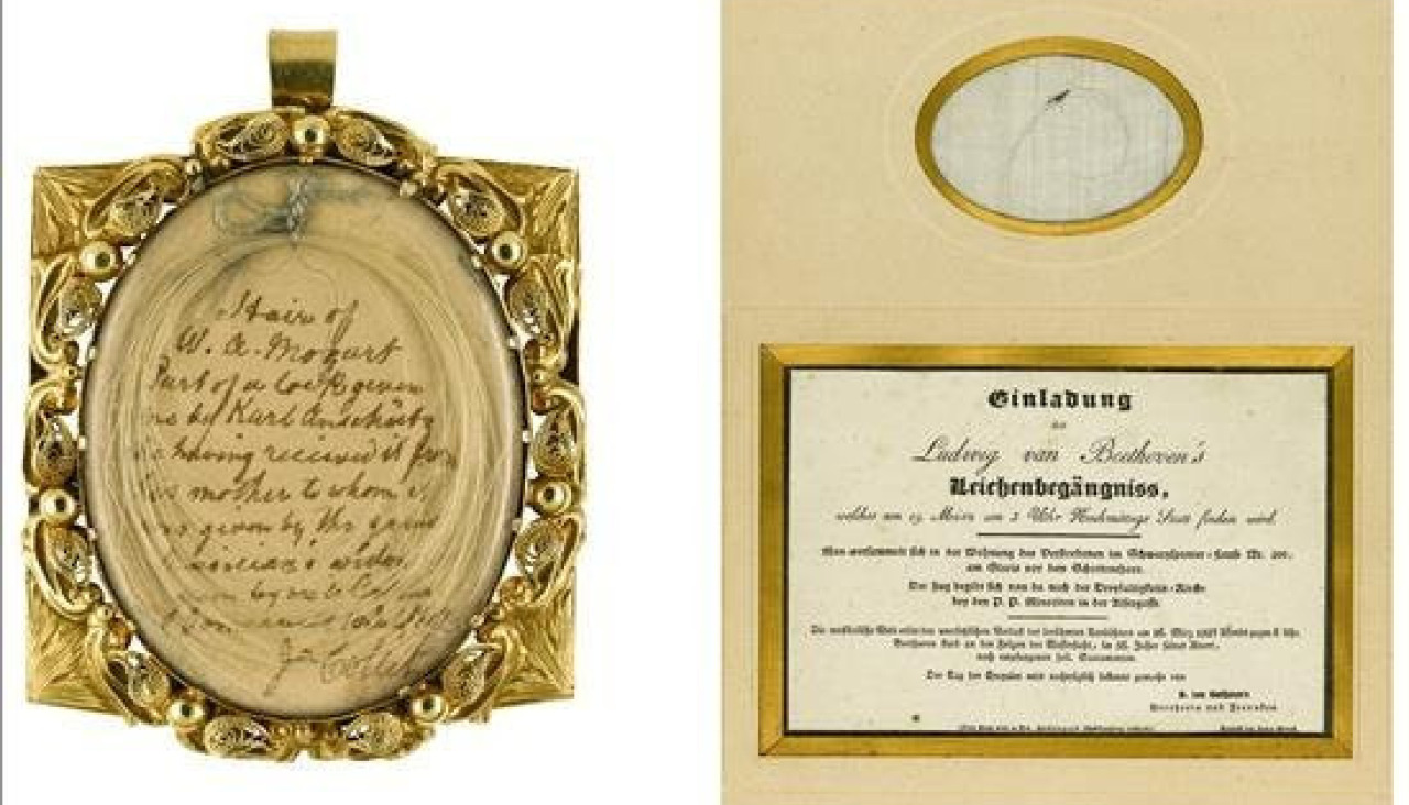 En la misma puja, un mechón de pelo del alemán Ludwig van Beethoven (1770-1827), junto a una invitación a su funeral, se vendió por 8.125 libras (11.400 euros), por encima del precio estimado.