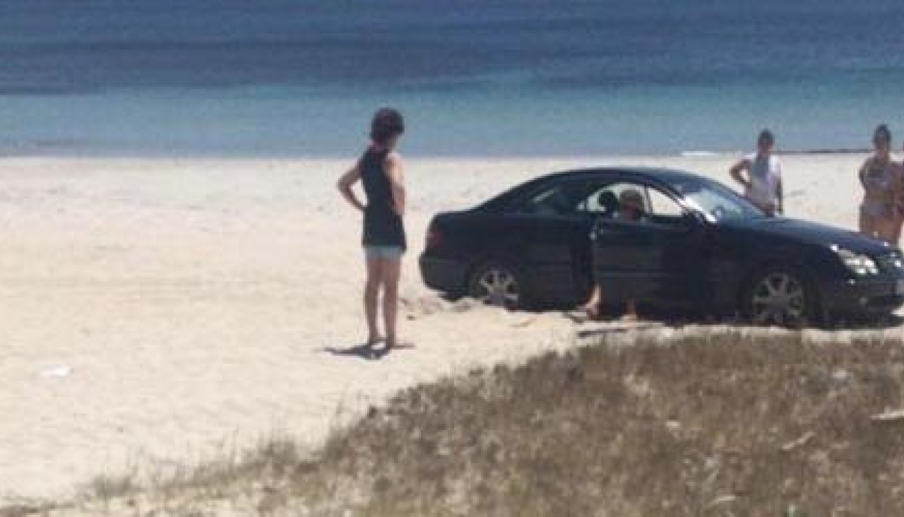 Pocos minutos después del atropello, Protección Civil recibía el aviso de que un coche se encontraba atrapado en la zona de Raeiros. Tras desplazarse al lugar, los efectivos de la agrupación comprobaron que se trataba de un Mercedes que, al tratar de dar la vuelta para regresar a la carretera general, se quedó hundido en la arena de la Praia do Pazo.