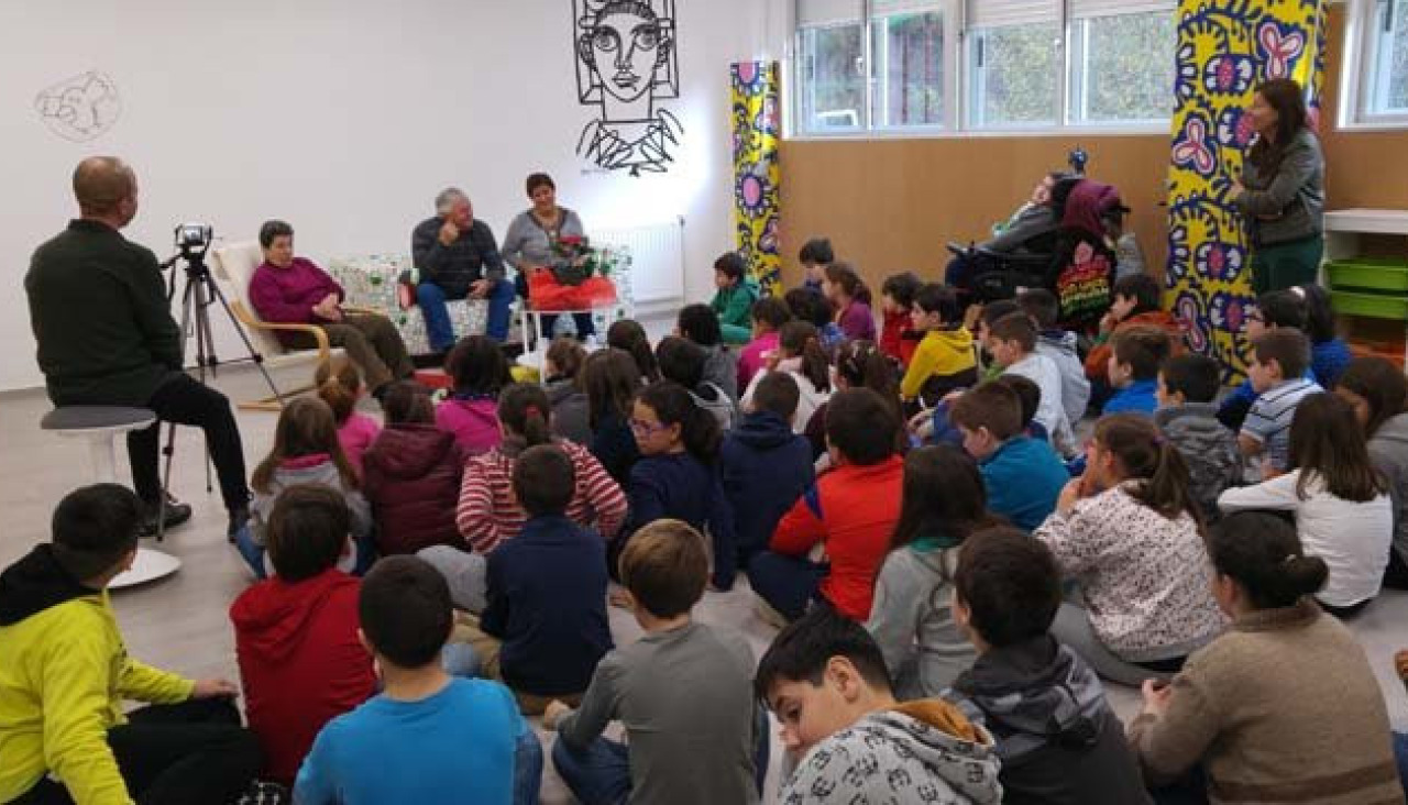 Isto, que parece saído dunha película estadounidense, facíano avós e bisavós dos escolares de hoxe e, por iso, para ensinarlles algunhas das letras e melodías daquela, este pasado venres un grupo de maiores achegouse ao colexio para compartir a sabedoría popular como antigamente: A través da palabra oral.