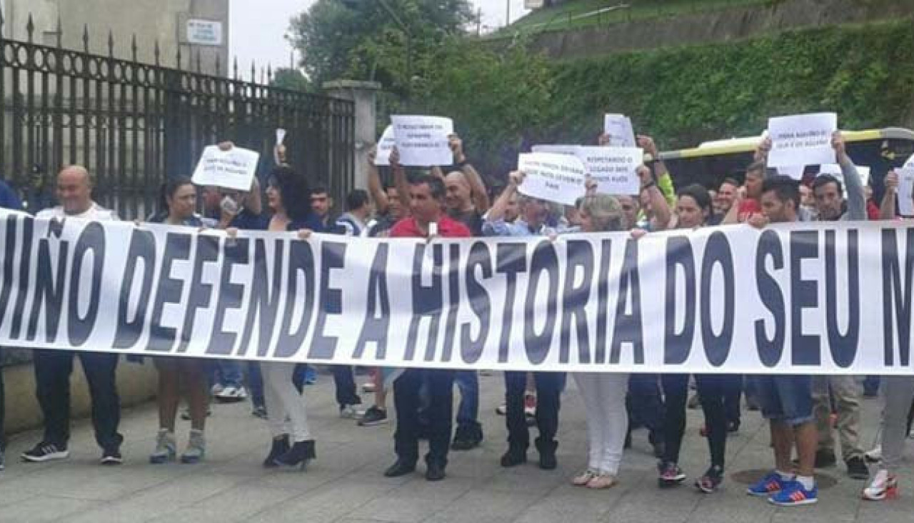 Alrededor de 200 personas, la mayoría de ellas mariscadores, se desplazaron ayer desde Aguiño hasta Santiago en un autobús fletados por la Cofradía de Pescadores de esa parroquia riveirense, así como en varios coches particulares para participar en la concentración programada ante los edificios administrativos de la Xunta en San Caetano para hacer oír su reclamación y defensa de lo que consideran que les pertenece en la zona de O Carreiro. Se colocaron detrás de una gran pancarta en la que podía leerse “Aguiño defende a historia do seu mar”, a la vez que gritaban consignas similares a las pronunciadas en un acto similar de hace semanas ante la delegación de Pesca en Riveira, como “manos arriba, esto es un atraco”, y otras en la que demandaban que se les devolviera lo que les quitaron, e incluso solicitaron la dimisión de la conselleira, a la que responsabilizan de la situación.