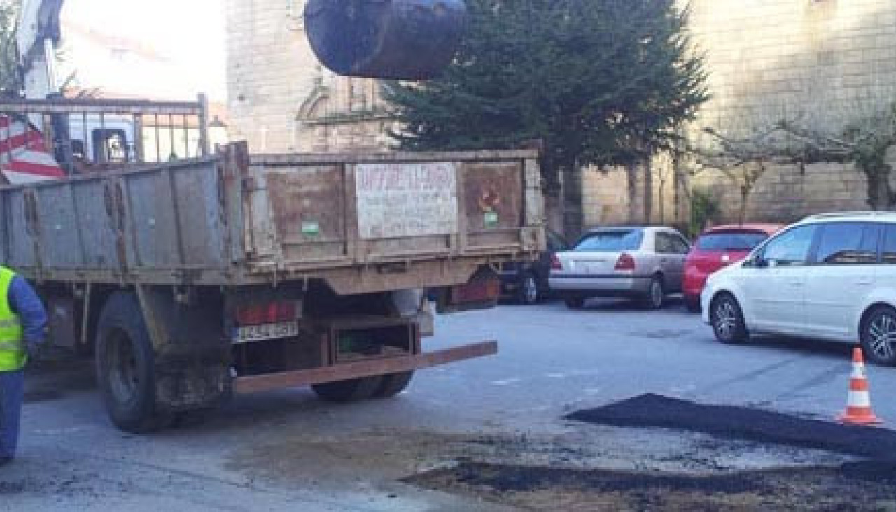 El firme de esta parte de la calle se levantó después de que una tubería que suministraba auga potable al local de la iglesia reventase dejando precisamente sin el líquido elemento a este local durante varios días. Hasta en dos ocasiones se produjo la avería hasta que, finalmente, se dio con el foco de la misma, pero dejando sin asfaltar el trozo que se había destrozado hasta el día de ayer.