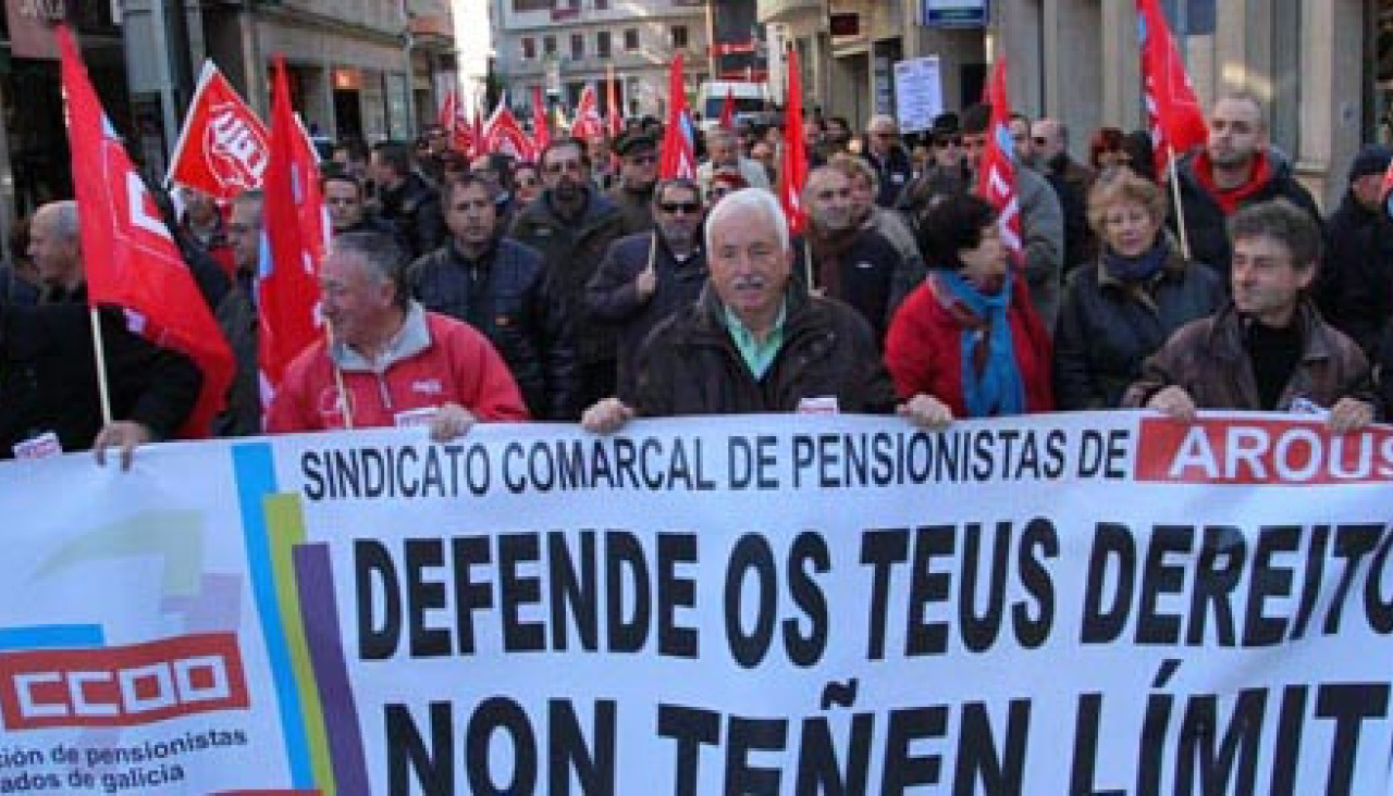 La marcha convocada por UGT y Comisiones Obreras tuvo como principal objetivo “defender as pensións, os servizos públicos e as persoas” de los “recortes e reformas do Partido Popular” que “poñen en risco o Estado de Benestar”.