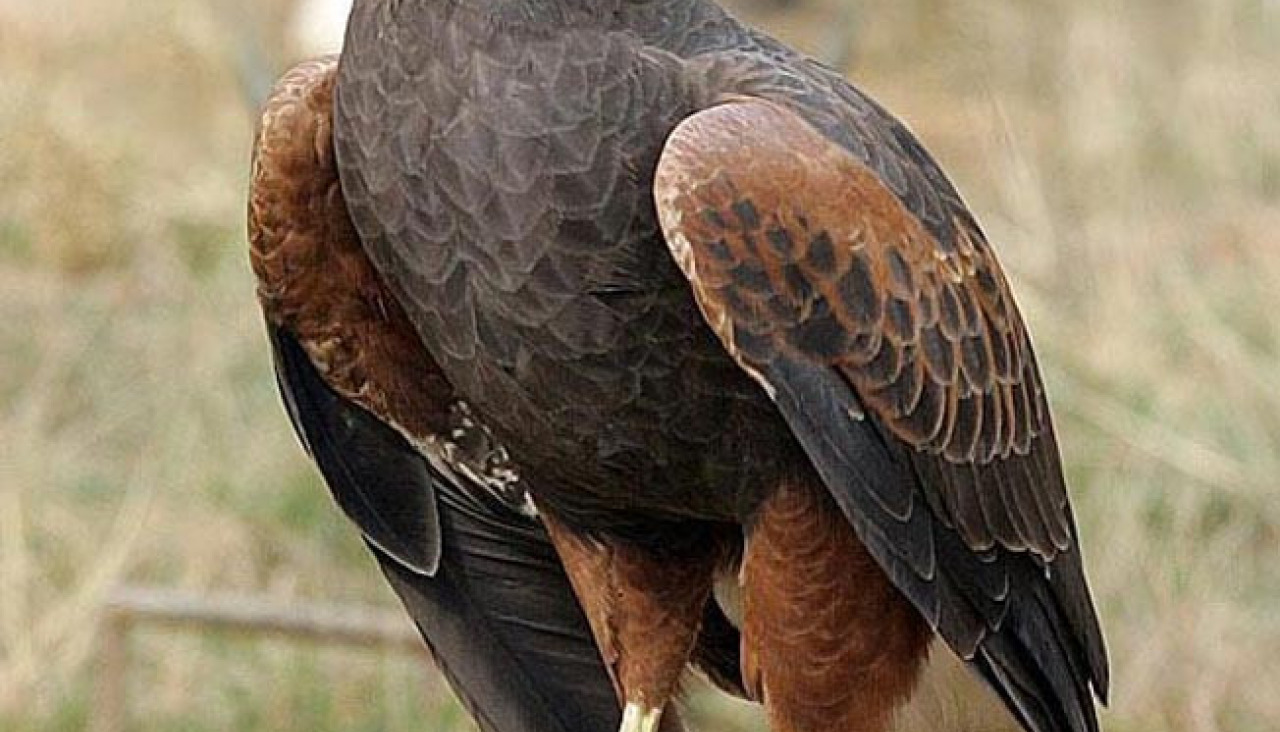 Se trata de un Águila de Harris de unos 40 centímetros de altura y unos 600 gramos de peso. El ejemplar es un macho y puede identificarse porque lleva en las patas anillas y una correa. Fran adquirió el ave, de unos dos años de edad —esta especie puede llegar a vivir hasta 10 o 15—, hace aproximadamente un año a un cetrero profesional.