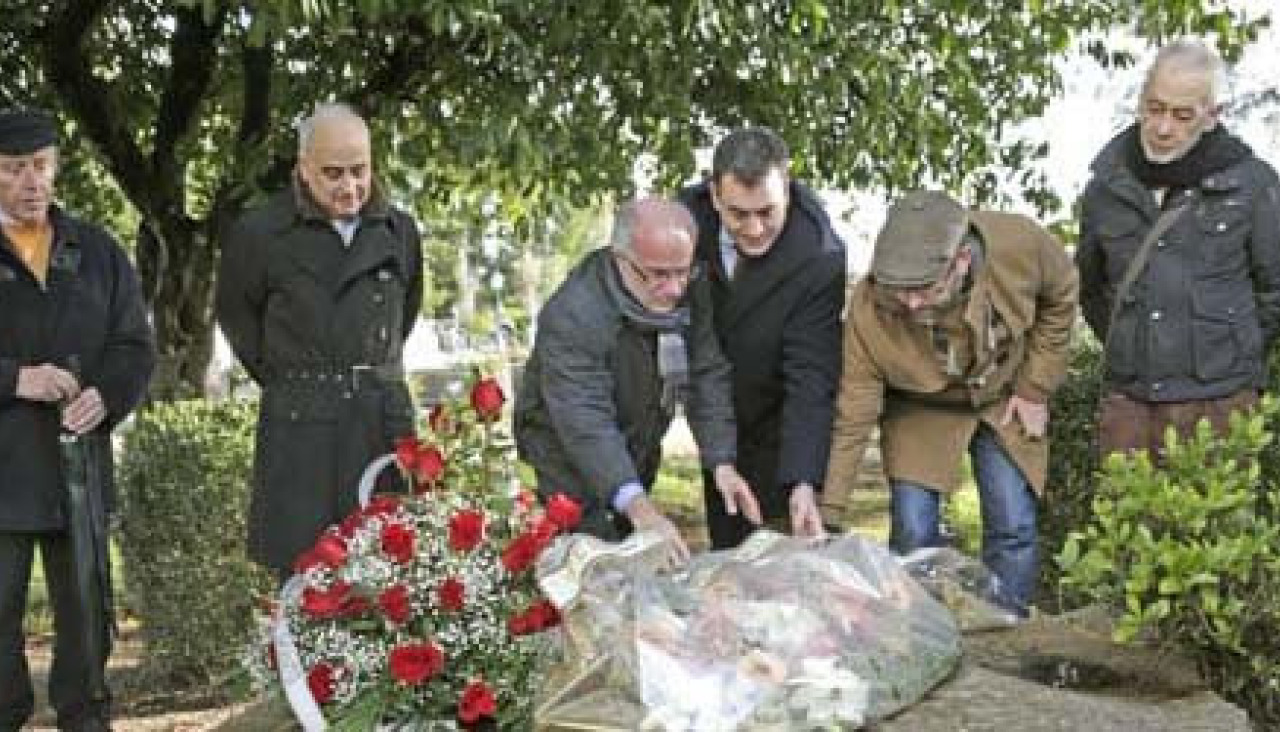 El Año Valle-Inclán ya está en marcha. La agenda de actos en honor al dramaturgo vilanovés en un 2016 en el que se cumplen 150 años de su nacimiento comenzó ayer con la tradicional ofrenda que el mundo de la Cultura realiza sobre la tumba del literato, en el compostelano cementerio de Boisaca.