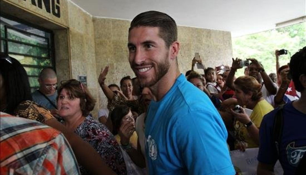 El defensa del Real Madrid Sergio Ramos, que visita Cuba como embajador de buena voluntad de Unicef, desató hoy pasiones entre los aficionados al fútbol de La Habana.
